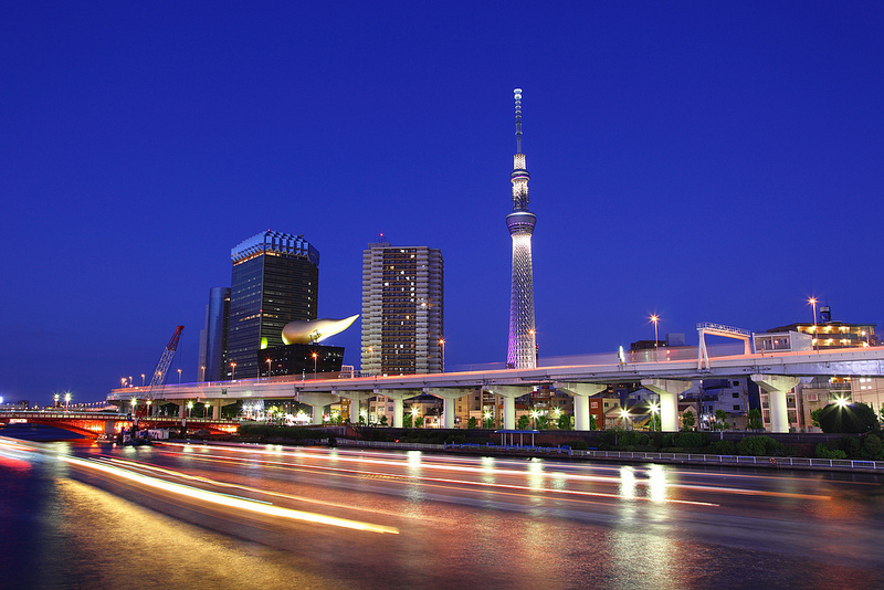 在距離地面350公尺的東京晴空塔展望台(TEMBO DECK)上能眺望整個關東地區,天氣晴朗時甚至能看到遠處的富士山。每到夜晚時分,更會點亮分別代表「精華」、「雅致」的淡藍與藍紫兩色燈光,交織輝映出浪漫美景。其周邊的商業設施「TOKYO Solamachi」中還設有天象館、水族館、商店等300多間的各式店鋪,隨時傳遞各種資訊與潮流,可謂是東京足以向世界誇耀的著名地標。