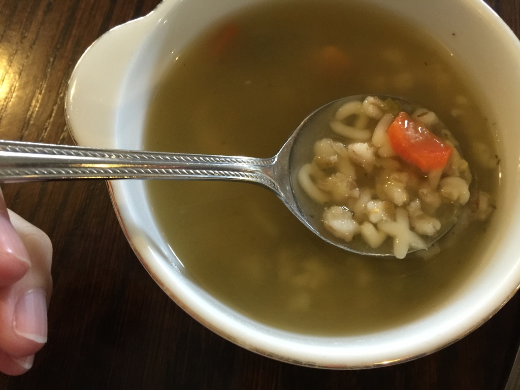 這個湯這個湯,真的不錯喝內,裡面還有麥片、紅蘿蔔、青豆等多種材料,