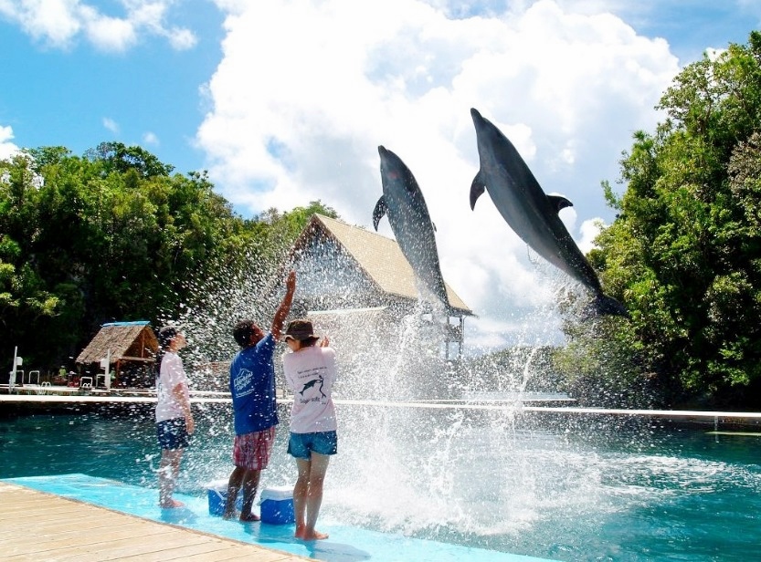 海豚灣為日本SONY公司所屬的一個海洋研究中心,此中心訓練他們與人類互動,及研究海豚的一些生態,因為此機構是非營利單位,一天只提供兩個船次及有人數限制的參觀,所以進入此中心限制較多,比如說不能喧嘩及工作人員在訓練海豚時,遊客是不可以觸摸它的,但此機構有提供一些特殊的課程,如與海豚共游及可以一起跟海豚潛水,都是要事先預定排時間及上課,價位也是相對較高,可以一試。