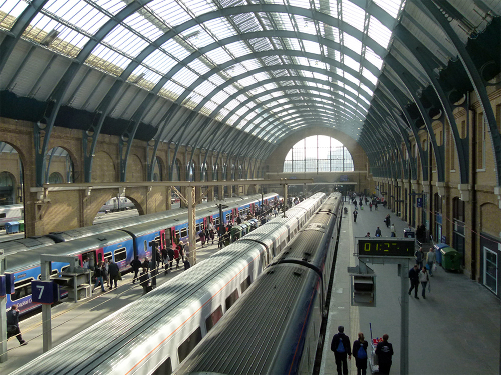 位於英國倫敦市中心的國王十字車站(King’s Corss Station ),是一個1852年啟用的大型鐵路終點站,也是全倫敦最繁忙的車站。國王十字車站是英國鐵路東海岸主幹線最南端終點站,從倫敦要往北到劍橋或約克都要從這搭火車。因為第九月台和第十月台間是隔著二條鐵路,站方特地在大廳旁設置了一個九又四分之三月台,還擺了一半台嵌入牆壁中的推車讓麻瓜影迷們留影紀念!⋯⋯