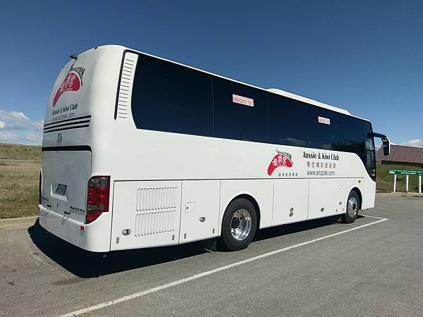 純白的車身加上澳遊客的LOGO,奔馳在紐西蘭南島的公路上,超明顯亮眼的!!