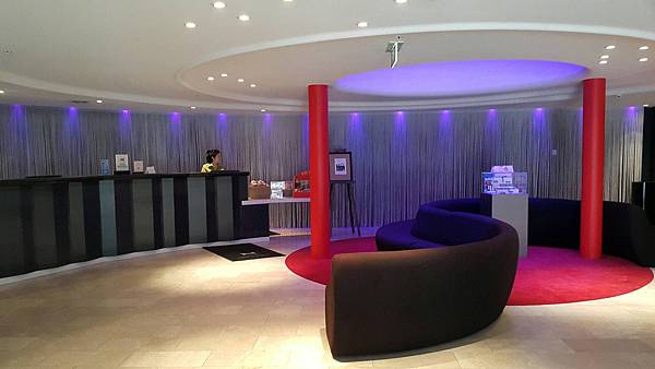 迎賓大廳選用搶眼的一雙大紅色系圓柱,曲線造型的沙發,就是要吸引您的第一目光。