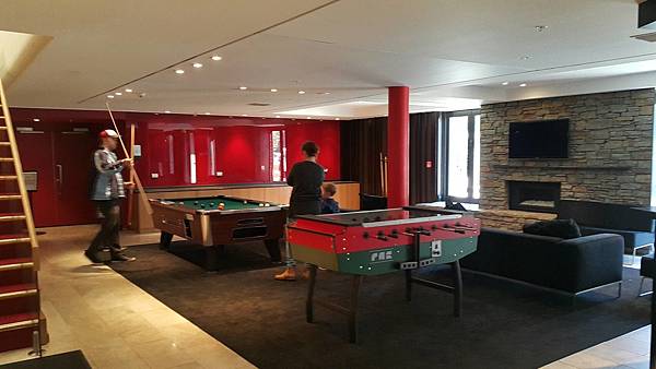 一旁的聯誼廳,有免費的wifi服務,還有提供撞球檯、足球遊戲檯供房客玩樂。