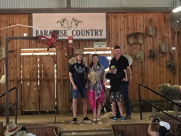工作人員很活潑的用剛剃下來的羊毛在貴賓身上裝飾了一番,逗得全場哈哈大笑呢~