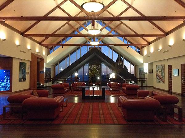 渡假村裡的建築多採用傳統木屋,大廳典雅的木造設計卻又隱藏不住它的高調氣派。
