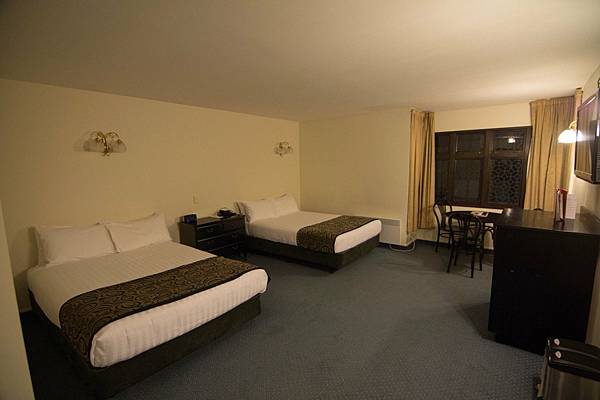 雙人房兩張大床,房間內空間大,簡單大方的室內設計。